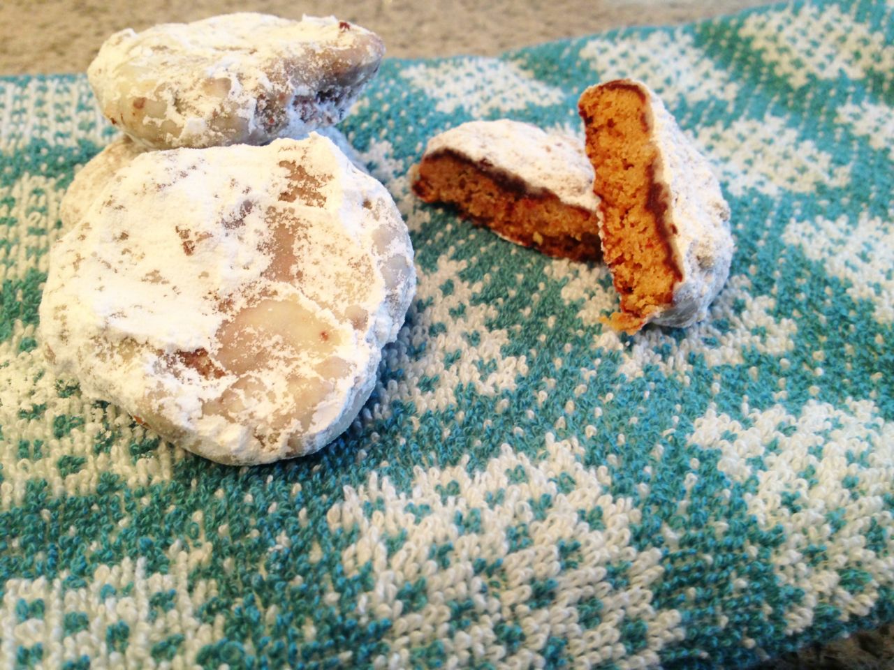Grease a baking sheet. Using a teaspoon, scoop the mixture, roll into a ball and place about an inch apart on the baking sheet. The mixture will be crumbly, so you will have to make sure the balls are compact. These cookies should be small because it will be easier to keep them from crumbling in the powdered sugar shake step (see below).